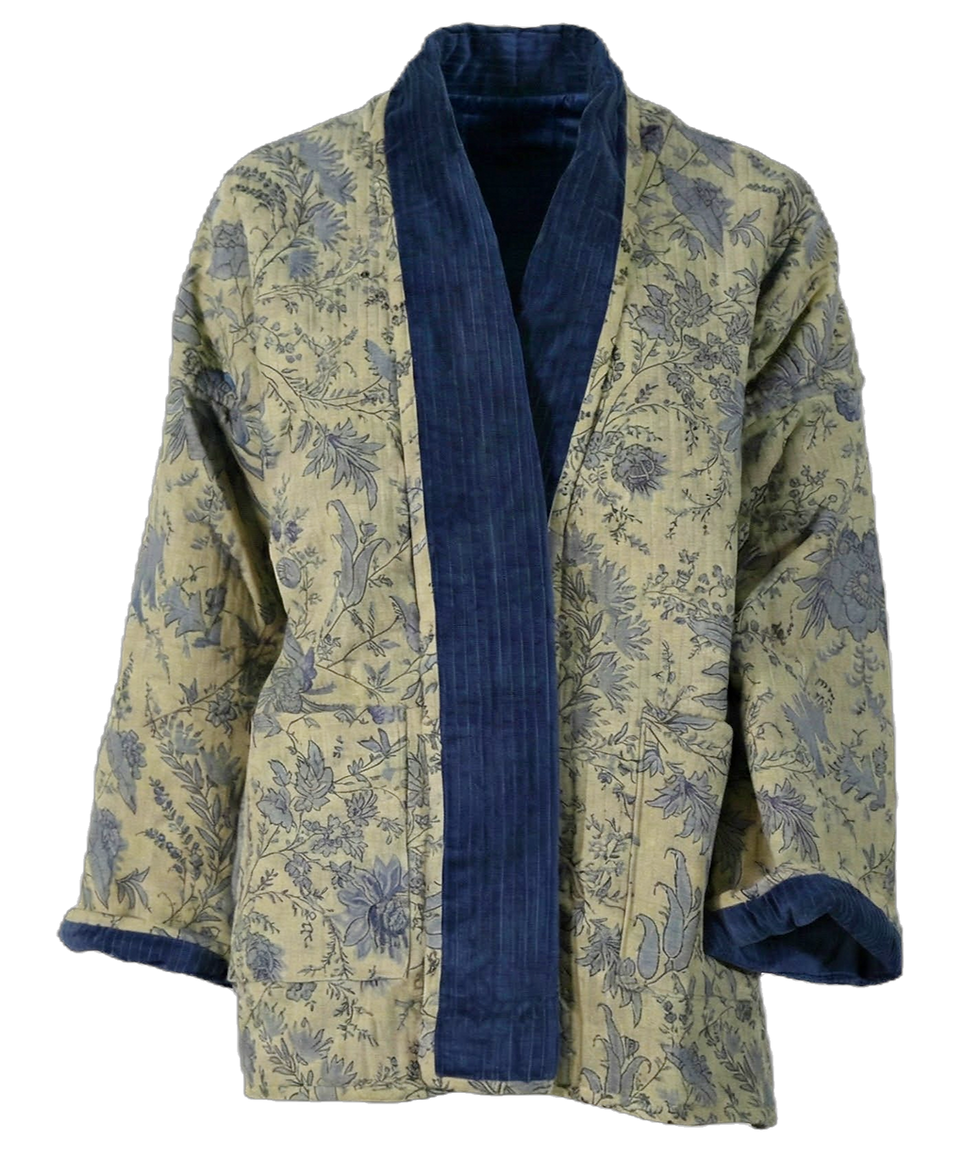 Veste en soie et coton Indigo Mandir Flower